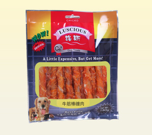 產品名稱:牛筋棒纏肉 規(guī)格型號:180g 每箱數(shù)量:30袋 公司網址:www.luspet.com