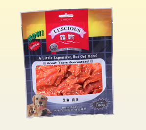 產品名稱:芝麻肉塊 規(guī)格型號:180g 每箱數(shù)量:30袋 公司網址:www.luspet.com